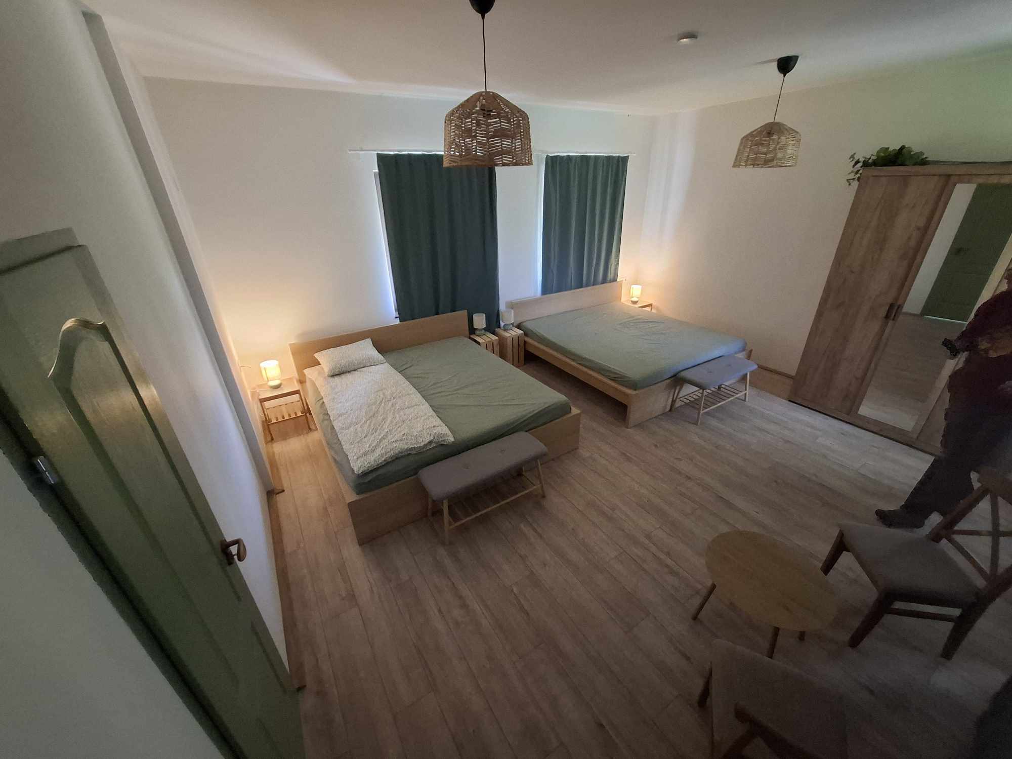 A tágas, központi hálószobában két franciaágy található, amelyek összesen 4 fő számára biztosítanak kényelmes alvóhelyet.